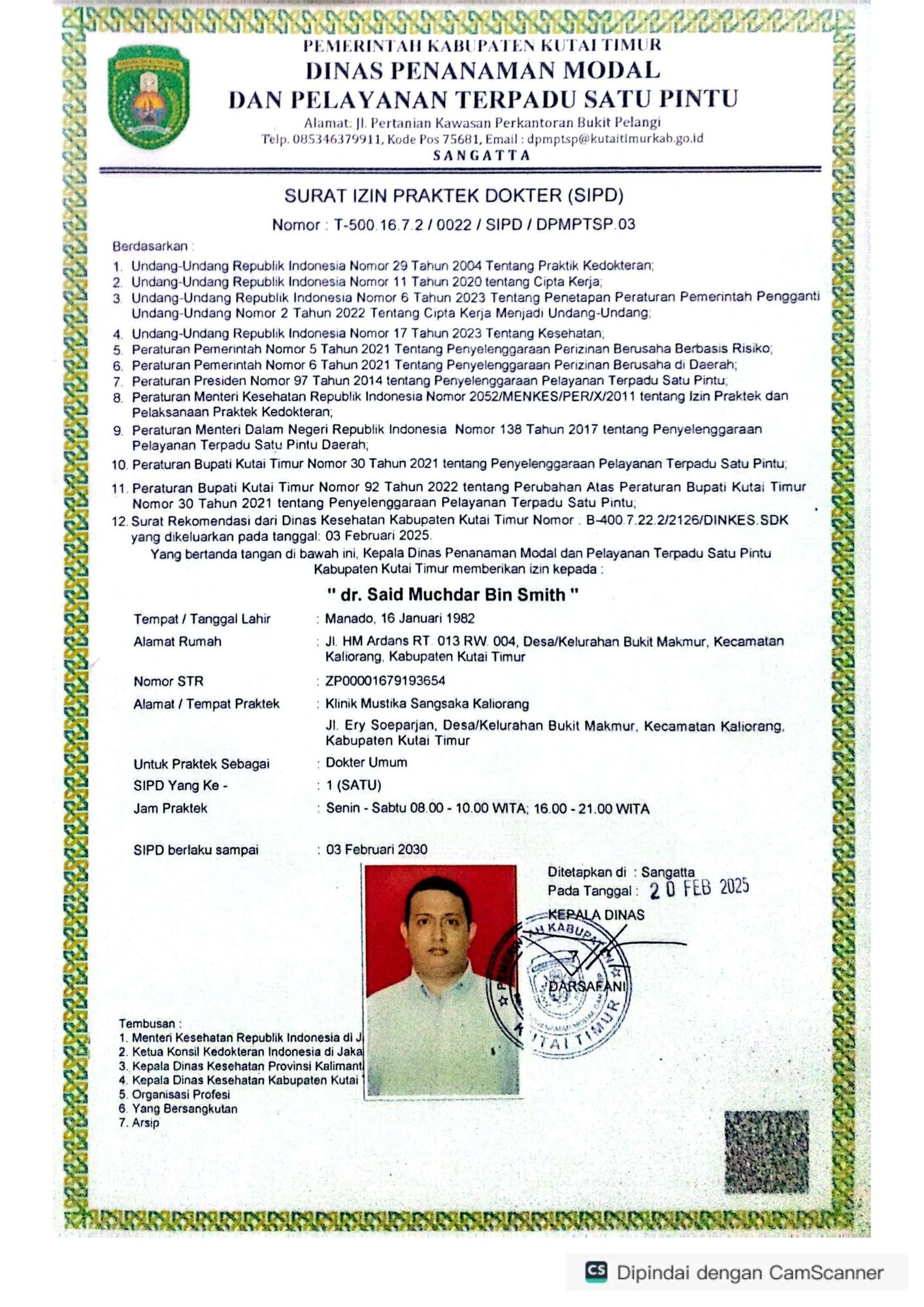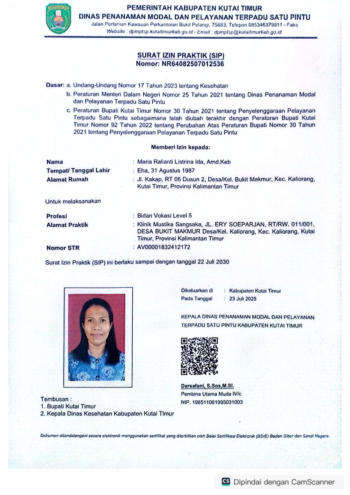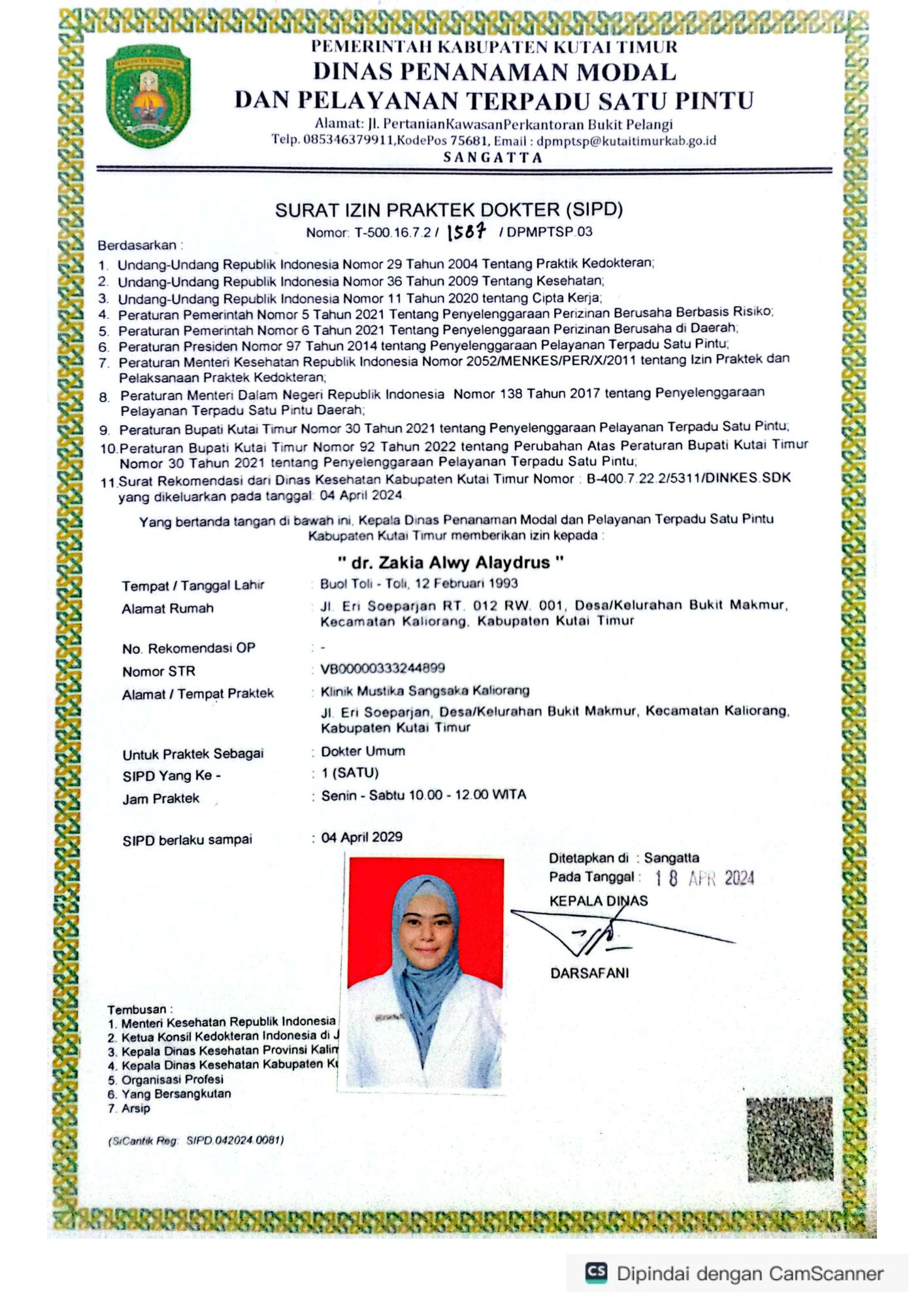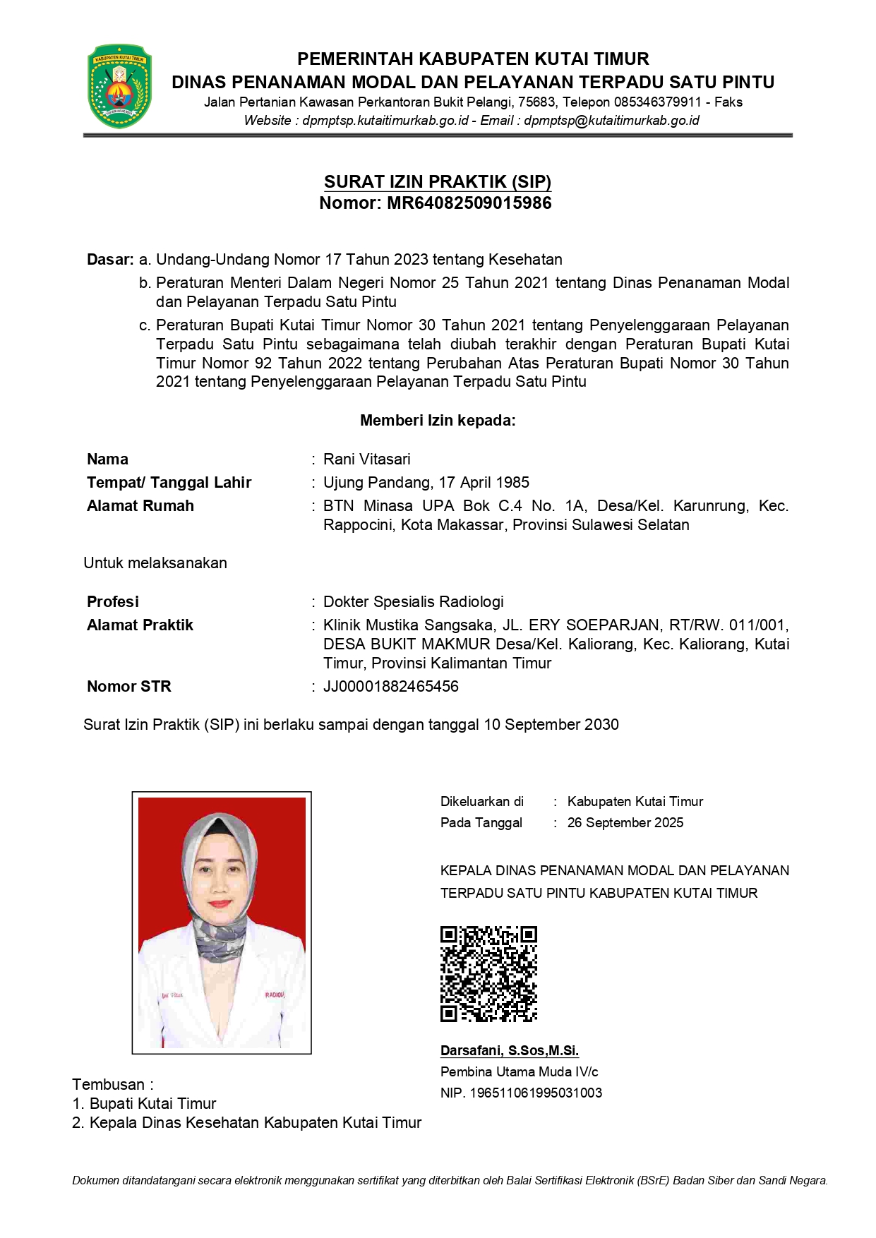 Lihat surat izin praktek dan sertifikat tenaga medis profesional di Klinik Mustik Sangsaka.