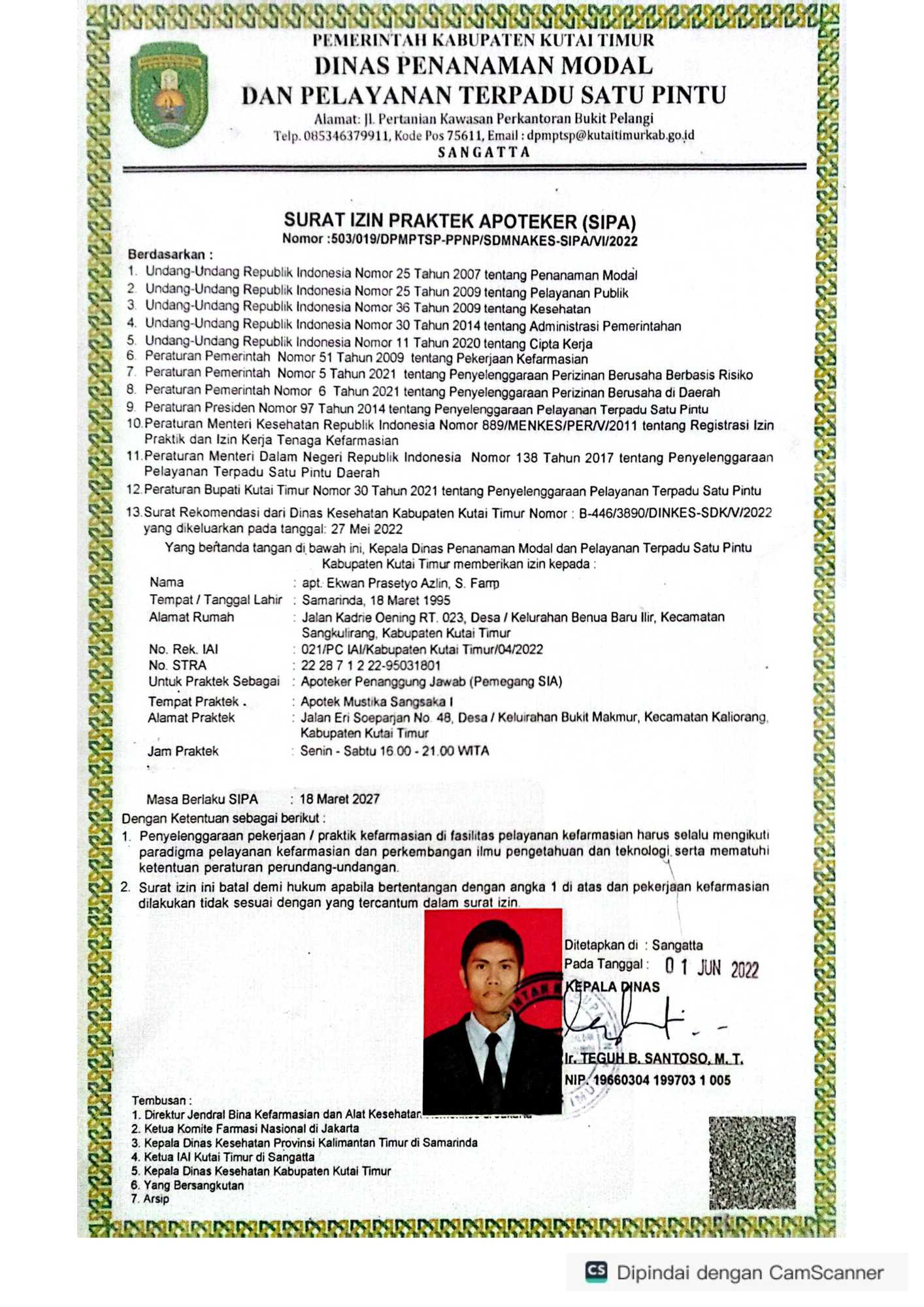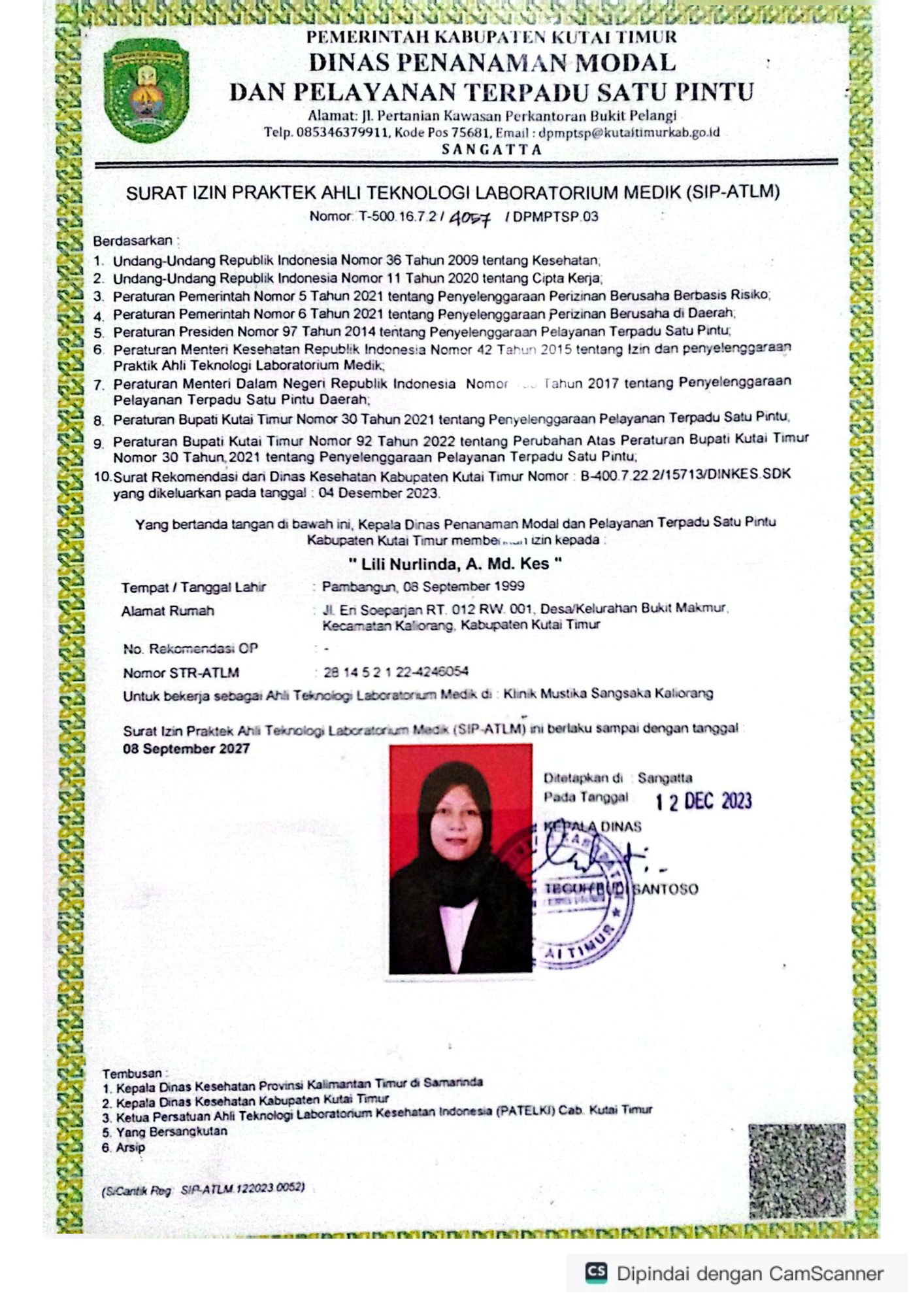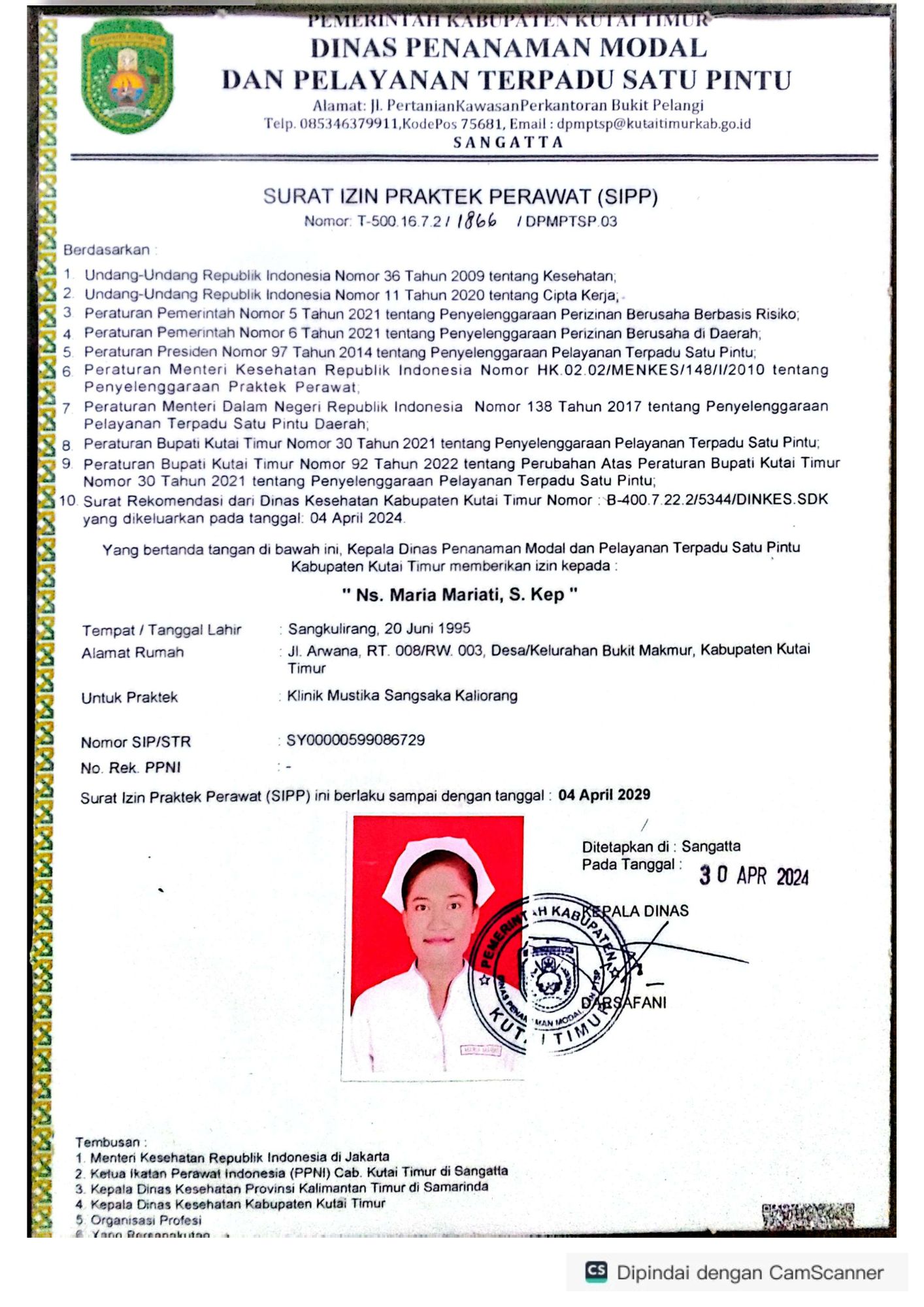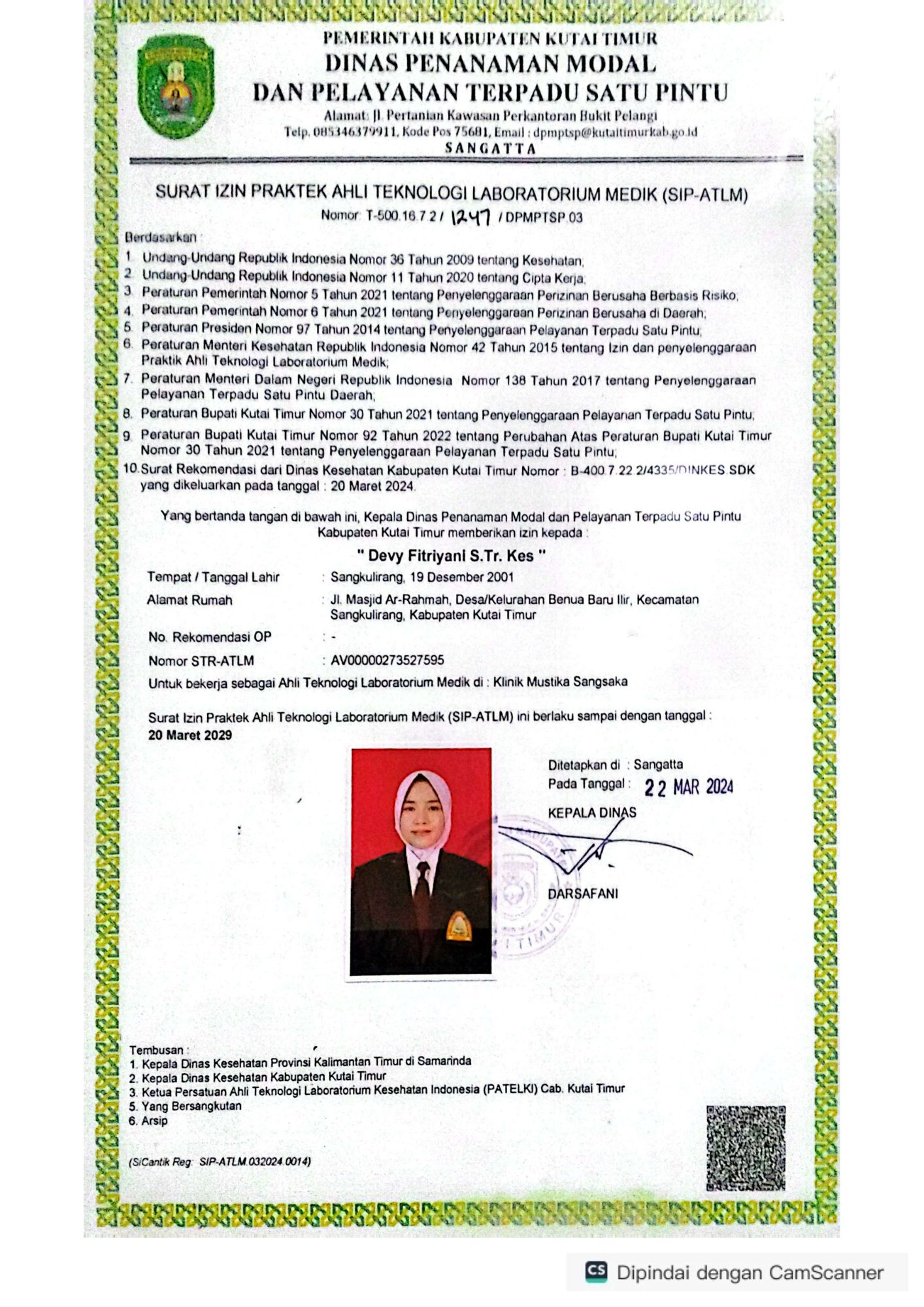 Lihat surat izin praktek dan sertifikat tenaga medis profesional di Klinik Mustik Sangsaka.